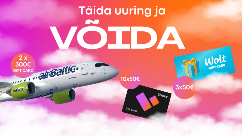 Balti töökoha heaolu uuring 2025 toimub ajavahemikus 5. november – 31. detsember 2025. Osaleda võivad vähemalt 18-aastased Eesti, Läti ja Leedu elanikud. Küsitluse täitmisel ja kontaktandmete esitamisel osalete automaatselt auhinnaloosis. Võitjad valitakse juhuslikult seitsme tööpäeva jooksul pärast küsitluse lõppu ja nendega võetakse ühendust e-posti teel. Teie vastused jäävad anonüümseks ning isikuandmeid kasutatakse ainult võitjatega ühenduse võtmiseks. Korraldaja: Stebby OÜ.