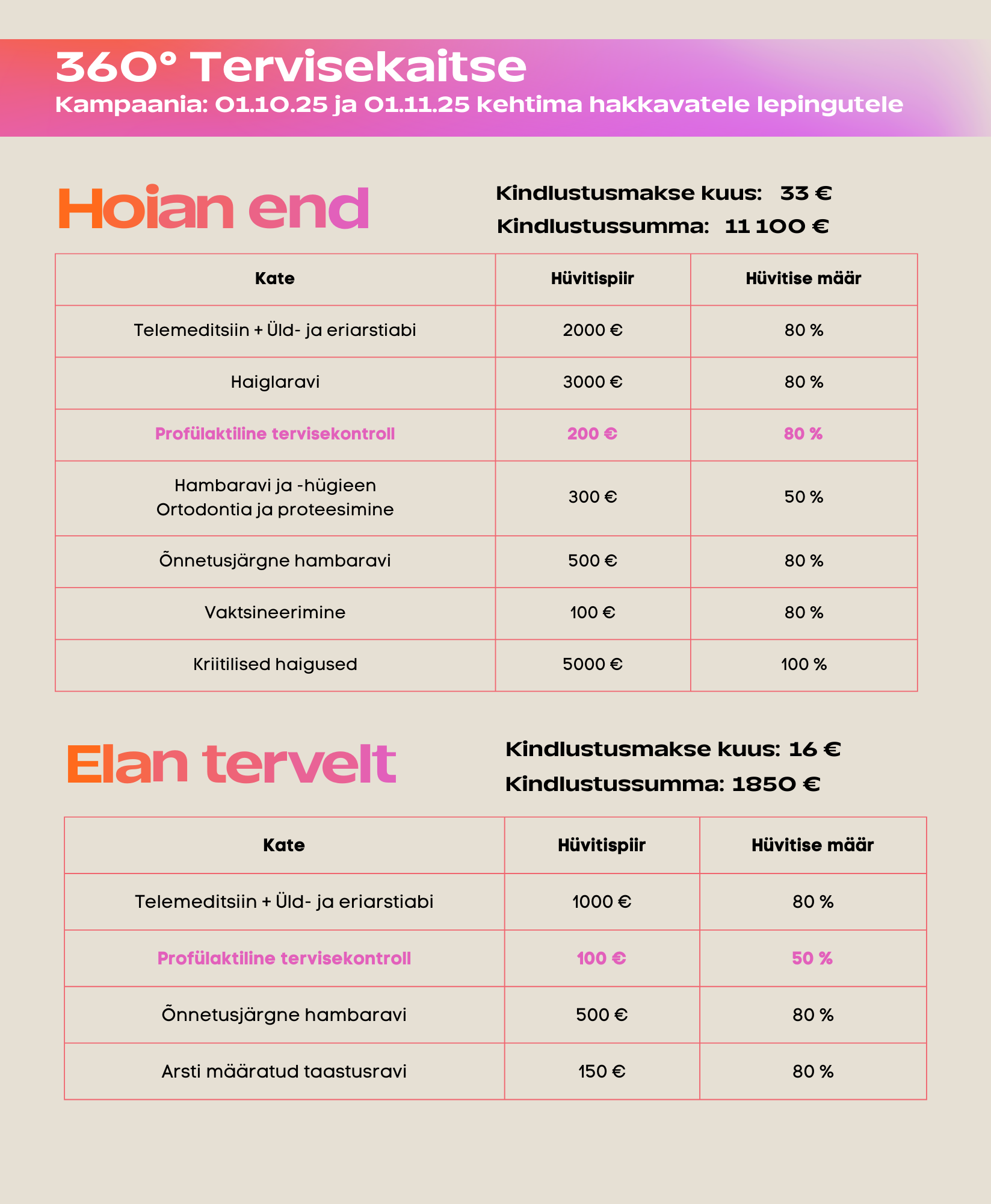 Valmistu külmadeks kuudeks targalt! Kõik uued Stebby 360° Tervisekaitsega liitujad saavad nüüd boonusena 200 € profülaktiliste tervisekontrollide katteks (tavapärase 100 € asemel). Rohkem hoolt, rohkem kindlustunnet – ikka Sinu heaoluks.