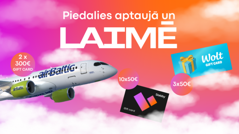 Aptaujas atbildes ir anonīmas un netiek saistītas ar personas datiem. Dati, kas savākti izlozei, tiks dzēsti pēc visu balvu izsniegšanas. Plašāka informācija pieejama Stebby Privātuma paziņojumā.