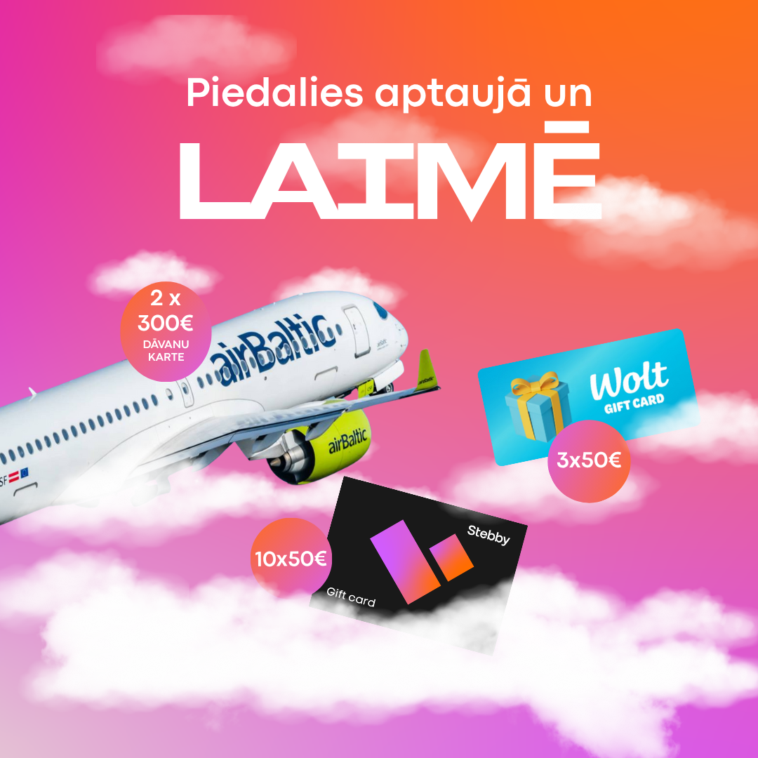 3. Kampaņas laikā Stebby veiks Baltijas darbavietu labbūtības aptauja 2025 un izlozēs balvas starp dalībniekiem, kuri pilnībā aizpildīs aptauju un beigās norādīs savus kontaktinformācijas datus (turpmāk – dalībnieki).